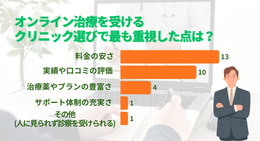 - AGAオンラインクリニックを選ぶ際、最も重視した点は何ですか?