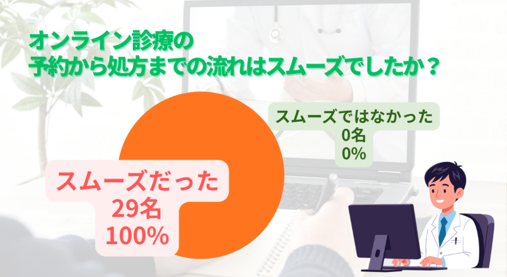 - オンライン診療の予約から薬の処方までの流れはスムーズでしたか?