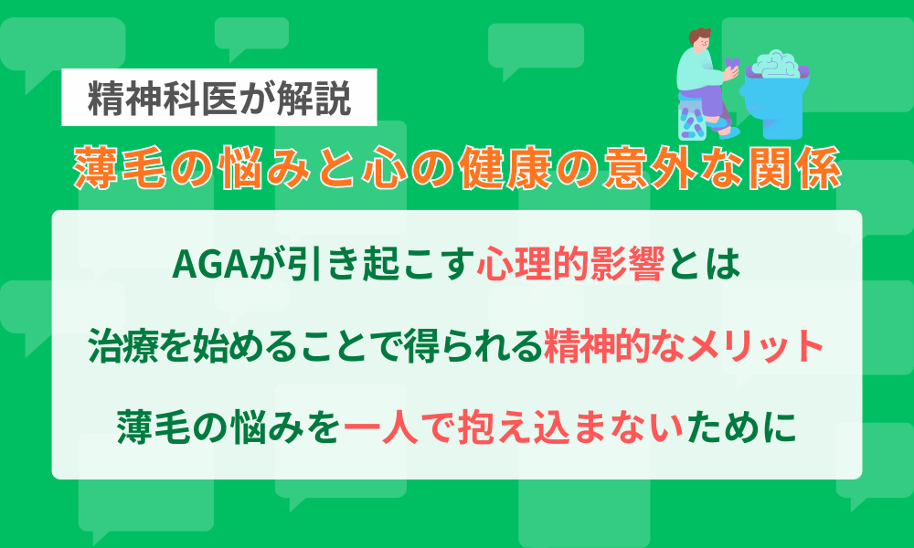 - 薄毛は周りを気にしたり、精神的なストレスにもなるため治療を開始することは心の健康のためにも重要