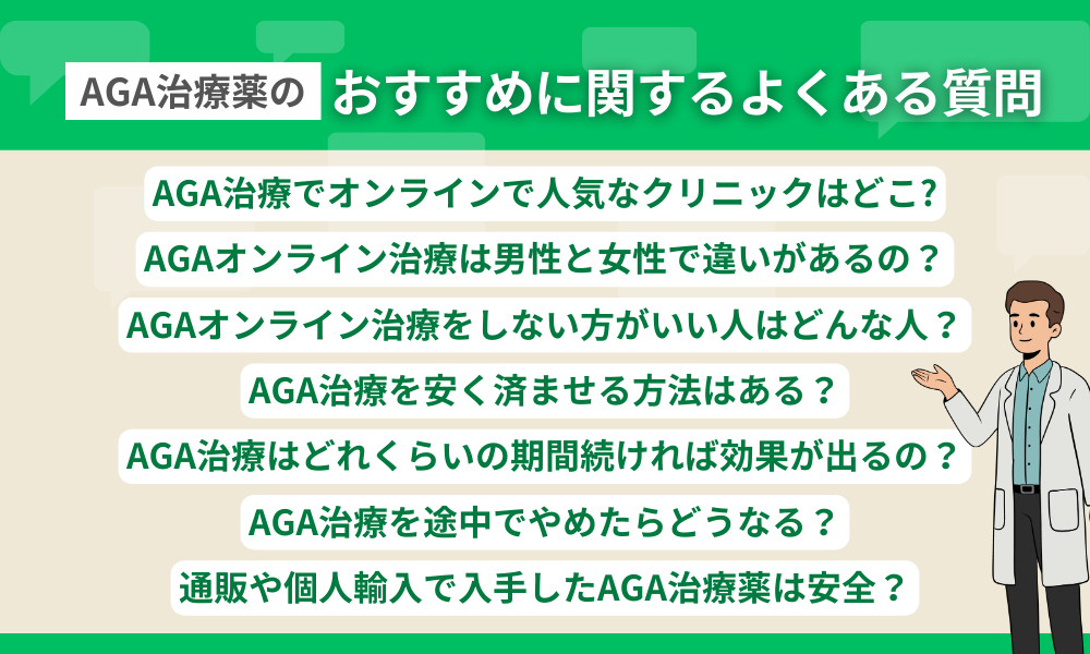 ここでは、AGAオンライン診療を検討する際によくある質問と、そのポイントをわかりやすくまとめました。