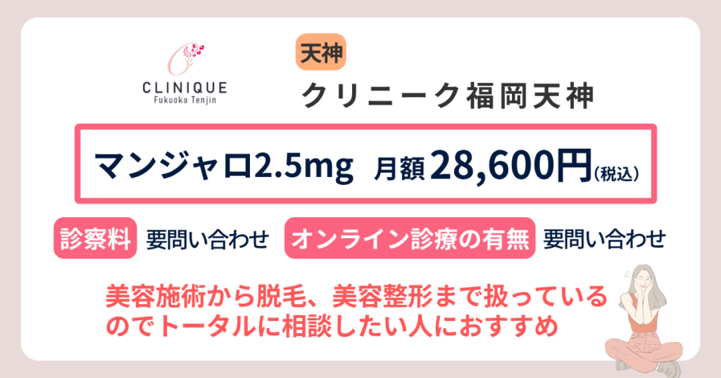 福岡天神駅から近いクリニックでマンジャロを処方してもらえますか?