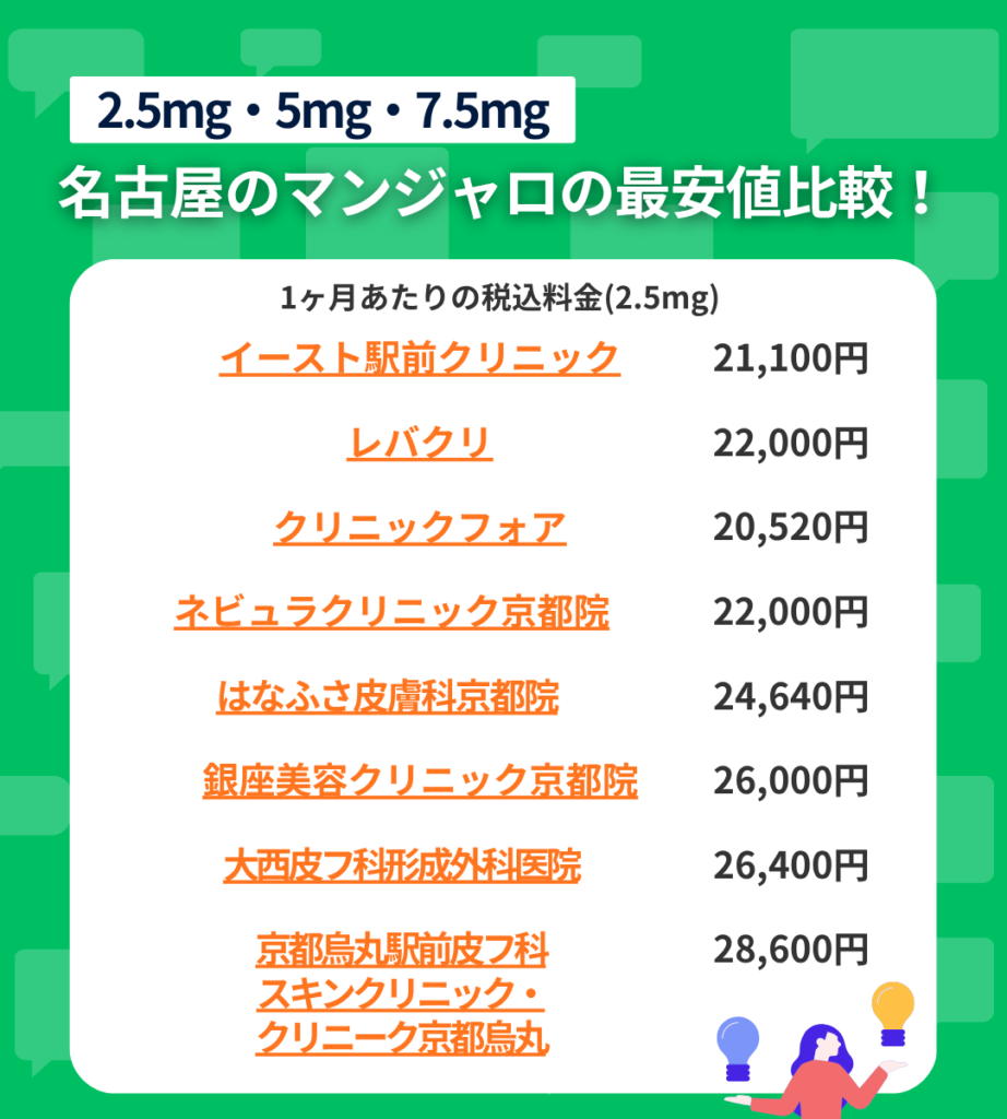 【2.5mg・5mg・7.5mg】京都のマンジャロ最安値比較!