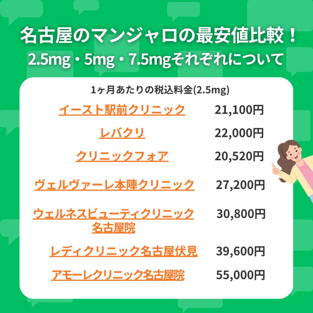 名古屋のマンジャロの最安値比較!2.5mg・5mg・7.5mgそれぞれについて