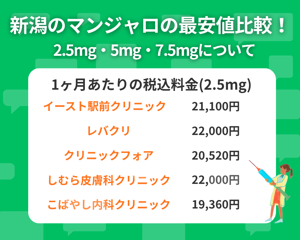 新潟でマンジャロを処方してもらう場合、クリニックごとに料金が異なります。