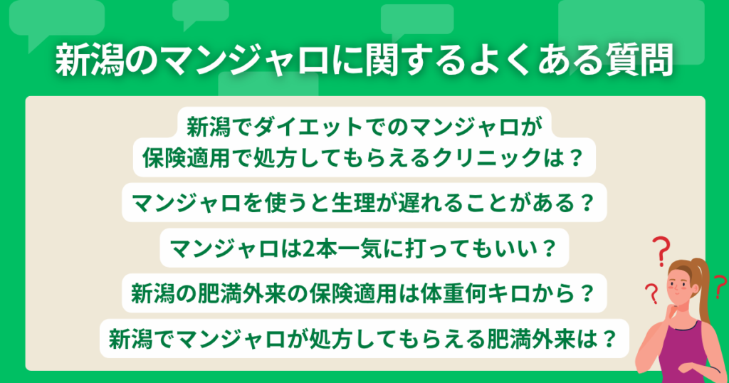 ここでは、新潟でマンジャロの処方を検討している方に向けて、よくある質問とその回答をわかりやすくまとめました。