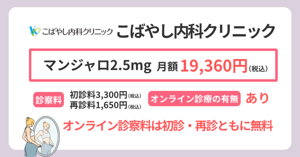 2.5mgでは、こばやし内科クリニックがオンライン診療で21,010円(税込)と最安水準です。