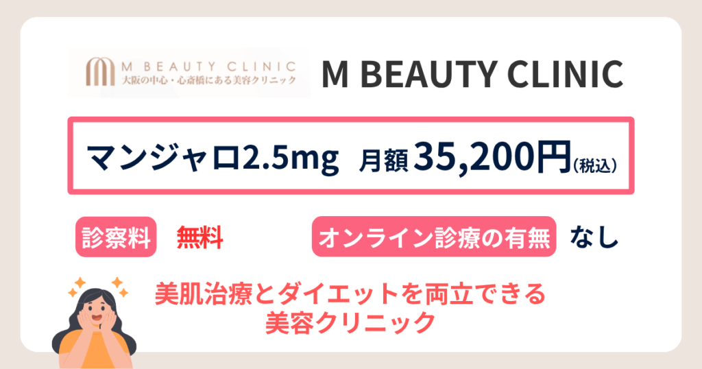 M BEAUTY CLINICは、美肌治療とあわせて医療ダイエットを進めたい方に向いています。