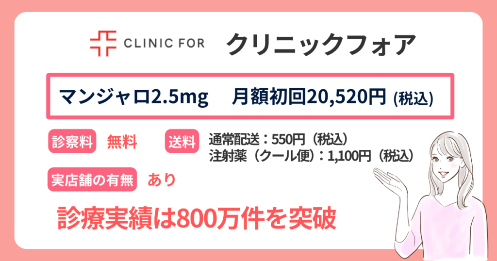 - クリニックフォア:2.5mg 20,520円(税込)〜