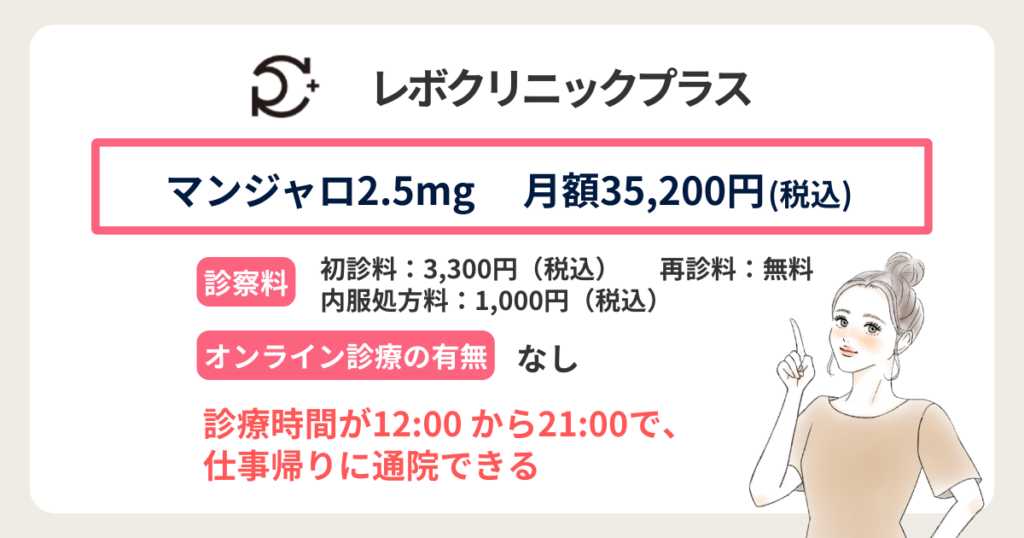 REVO CLINIC PLUSは、夜間に通院したい方や、マンジャロを少量から試したい方に向いています。